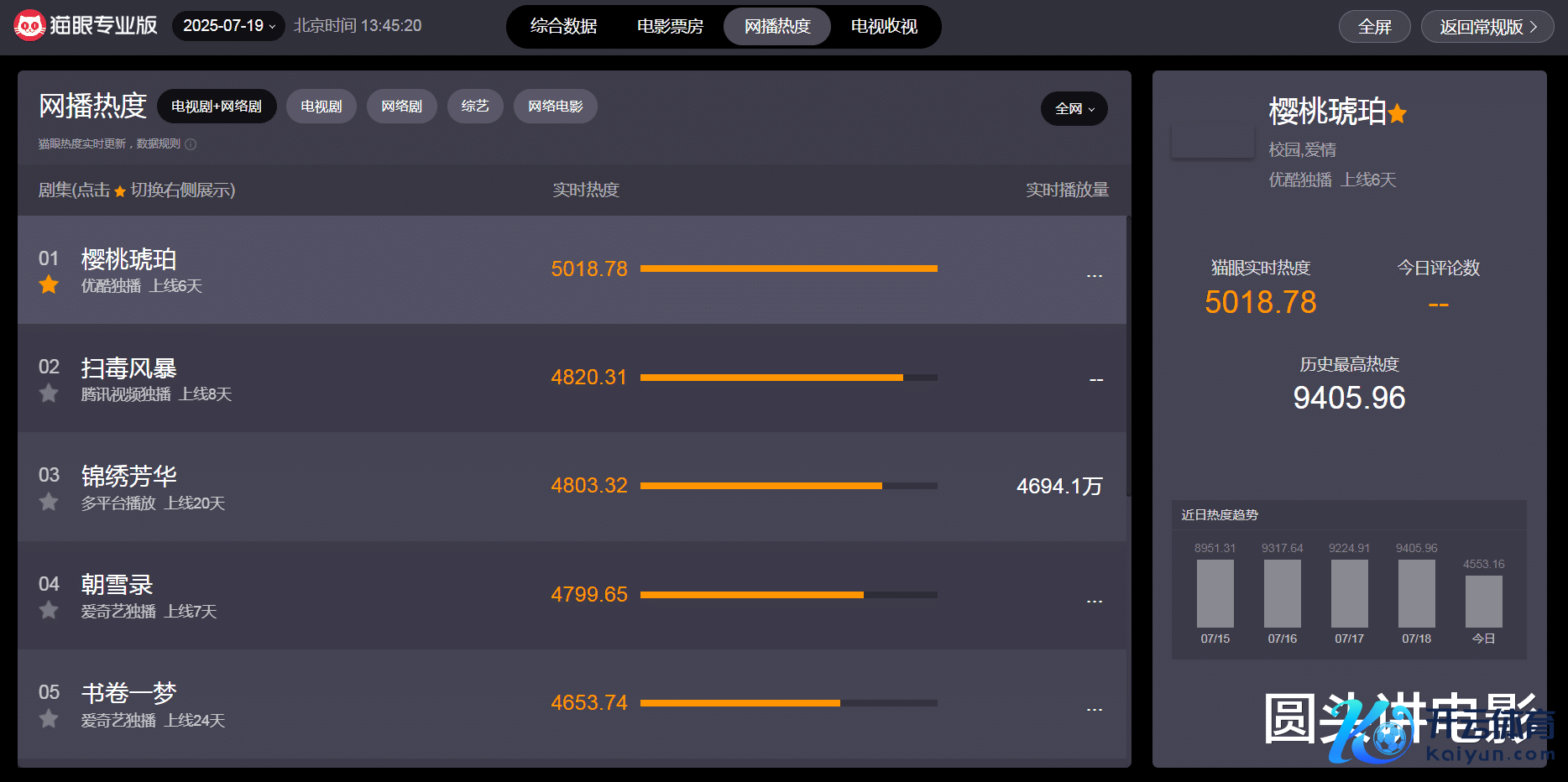 死心发文时辰,从“猫眼专科版”及时数据表现可知,面前热播电视剧中,网播热度排名榜最高的五部剧差异如下: