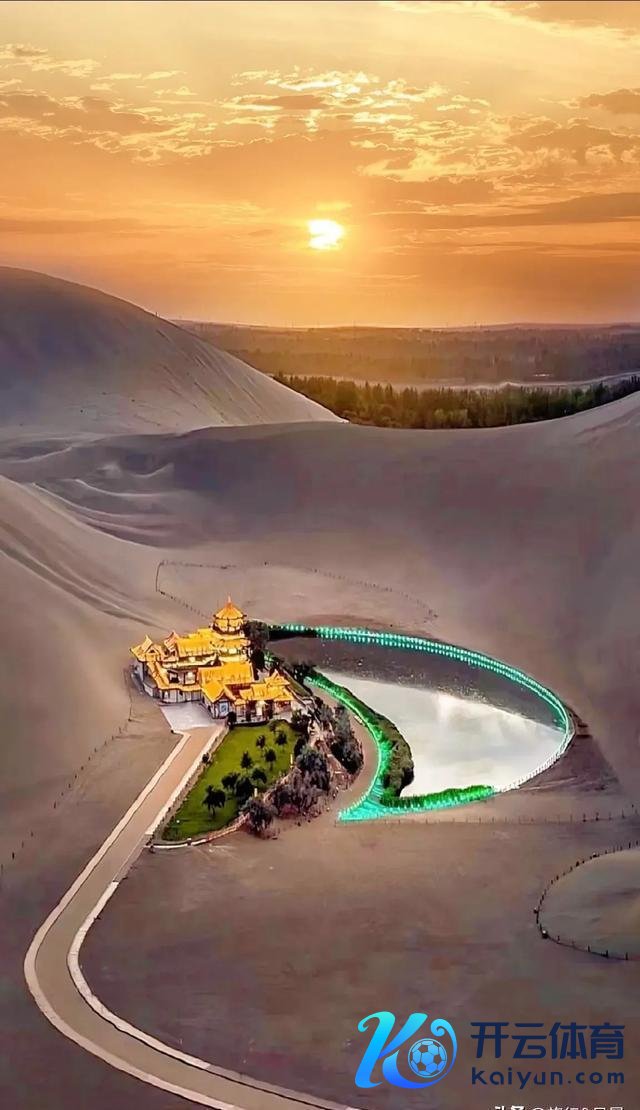 "是的,这个排在第九名的景区真实沙漠中的业绩。一弯清泉嵌入在茫茫沙漠中,周围是飞舞的鸣沙山。从沙丘顶滑下来时,沙子会发相当妙的声响。