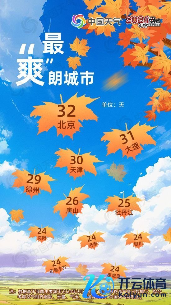 大理、天津、锦州、唐山、牡丹江等城市本年秋高气爽的日数也达到25天或以上,纷纷上榜本年度最“爽”朗城市。如若念念要体验秋之开畅,不妨找契机去这些所在走走。
