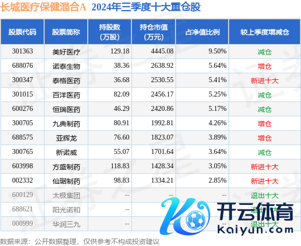 长城医疗保健混杂A为混杂型-偏股基金,笔据最新一期基金季报显现,该基金钞票确立:股票占净值比92.33%,债券占净值比0.13%,现款占净值比8.33%。基金十大重仓股如下:
