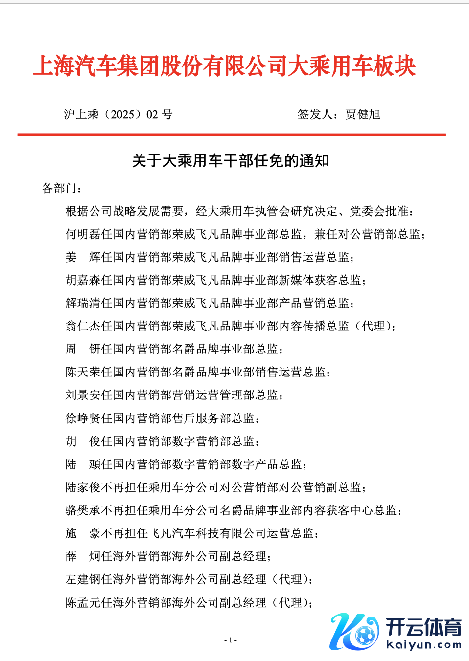 九游体育官网登录入口上汽乘用车日前公布《对于大乘用车干部任免的见知》-九游体育「NineGame Sports」官方网站 登录入口