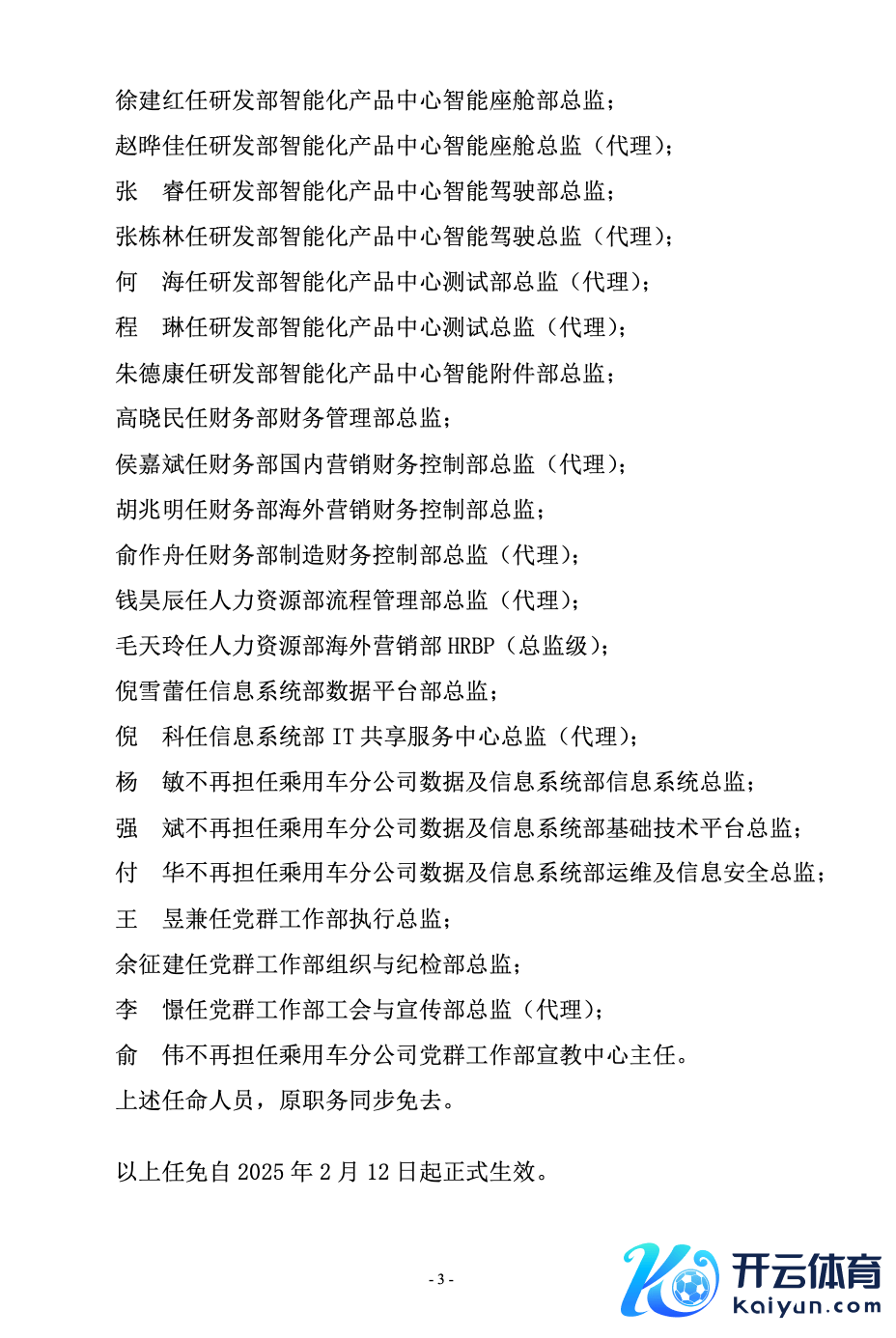 IT之家 2 月 19 日音问九游体育官网登录入口,据华尔街见闻报谈,上汽乘用车日前公布《对于大乘用车干部任免的见知》,对乘用车板块干部大限度任免,触及超 60 位中高层,任免由上汽集团总裁贾建旭签发,2 月 12 日起成功。