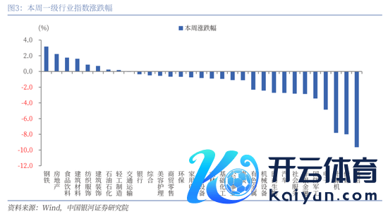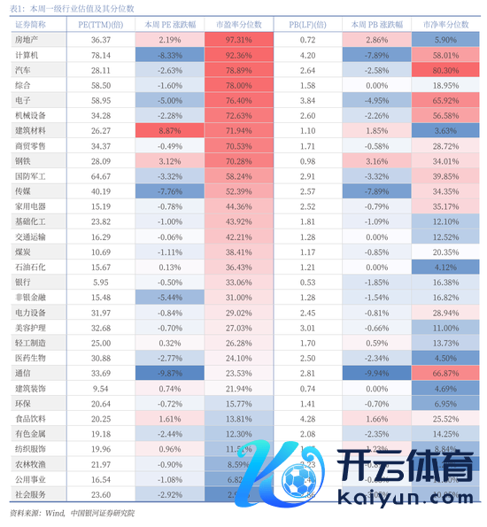 从行业来看,本周一级行业跌多涨少,其中,TMT板块轰动回调。涨幅靠前的三个行业按次为钢铁、房地产、食物饮料,涨幅分袂为3.18%、2.22%、1.77%。通讯、传媒、计较机等行业则有所回调。
