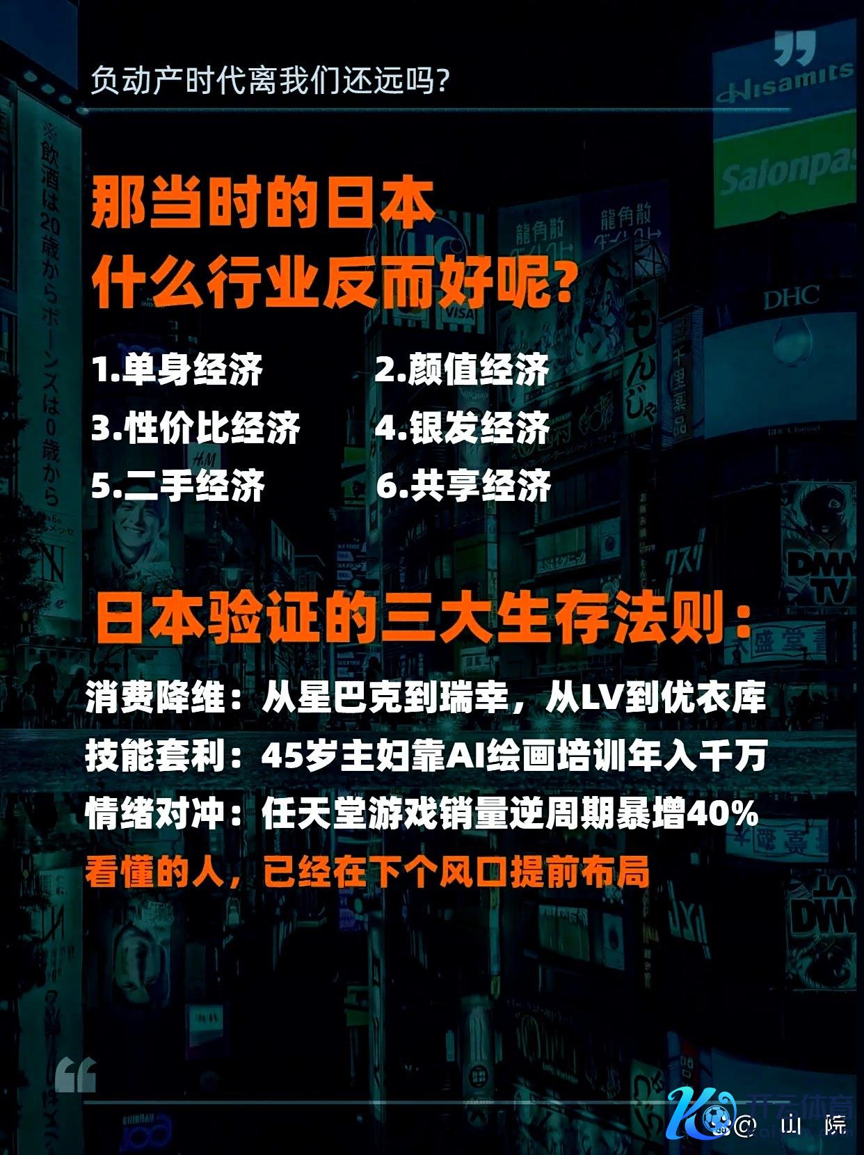 当环球经济堕入增长停滞、花消邋遢的穷冬时,日本“失意的30年”却为众东说念主揭示了一个反直观的真相:危急中继续孕育着结构性机遇。通过《负动产期间》《东说念主口与日本经济》《后老本方针期间》三本书,咱们能了了看到,在经济穷冬中,哪些行业能穿越周期,完毕逆势滋长。 刚需花消:经济越冷,需求越刚 《负动产期间》揭示了日本房地产泡沫毁坏后,基础花消的韧性。当不动产从“资产”沦为“欠债”时,食物、日用品等刚需花消却展现出惊东说念主的结识性。举例,日本酸奶花消从1989年的几千日元涨至2021年的1400