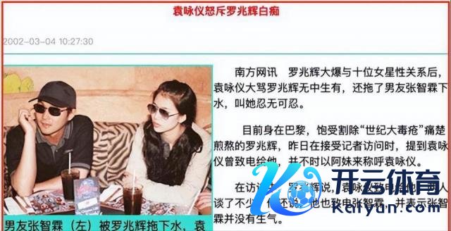 2002 年,香港地产财主罗兆辉歇业,邑邑不餍足之下运行大曝风骚嘉话,爆料中所谓被包养两个月的" Y 姑娘"一度被对号入座,恰是袁咏仪。