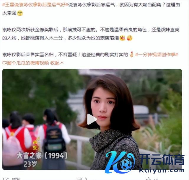 前些日子,王晶在个东谈主频谈里爆料,这一次谈到的是出谈即巅峰的港女袁咏仪。 他谈到,1993 年让对方一举摘得"金像影后"桂冠的《新不了情》,实则是个"六托一"的影坛古迹: 作品云集刘青云、刘嘉玲、张艾嘉等六位大佬、甘当绿叶,让袁咏仪整夜成名是料想之中。 此言一出骤然激勉热议,不少粉丝暗示动怒,合计"这个情理太牵强",因为袁咏仪两次斩获"金像影后"照旧因为演技过硬,而非只凭命运。 如实,早年以"靓靓"为艺名出谈的袁咏仪,出谈即巅峰,接连将两个影后桂冠揽入怀中,进犯电视剧行业也能大放异彩。 但也