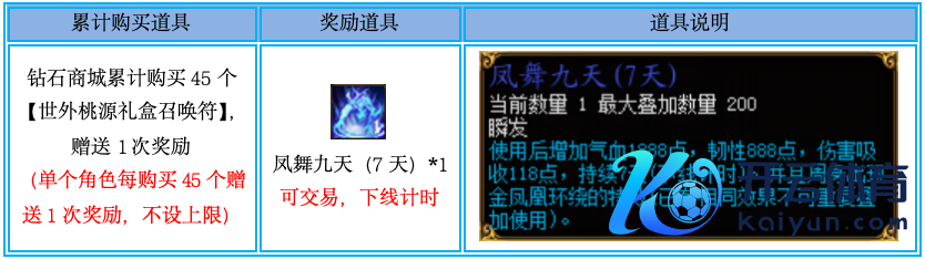 举止顺序:1、【洞天福地礼盒召唤符】仅限钻石商城购买,通过摆摊购买、彼此交游、邮件领取、拍卖购买等非钻石商城购买样式赢得的,不估计在举止内;2、本举止单个变装可类似进行参与,举例变装A在钻石商城购买了90个【洞天福地礼盒召唤符】,则举止结束后可赢得2个“凤舞九天(7天)”的奖励;3、举止是按照单个变装累计购买45的倍数向下取整估计,不会按照四舍五入估计。比如购买88个召唤符,那么赞助的即是1份奖励,购买满90个召唤符才是赞助2份奖励;4、奖励的谈具可交游,将在2026年1月9日18:00-21:00技术披发至稳当举止条款的变装邮箱中。三、【限时兑换】举止时刻:2025年12月30日帮衬时上架 – 2026年1月13日帮衬时下架 举止区服:巅峰16区②组 NPC位置:成齐(277,-490) 举止本色:举止技术,NPC“藏宝阁阁主”处将上架以下谈具: