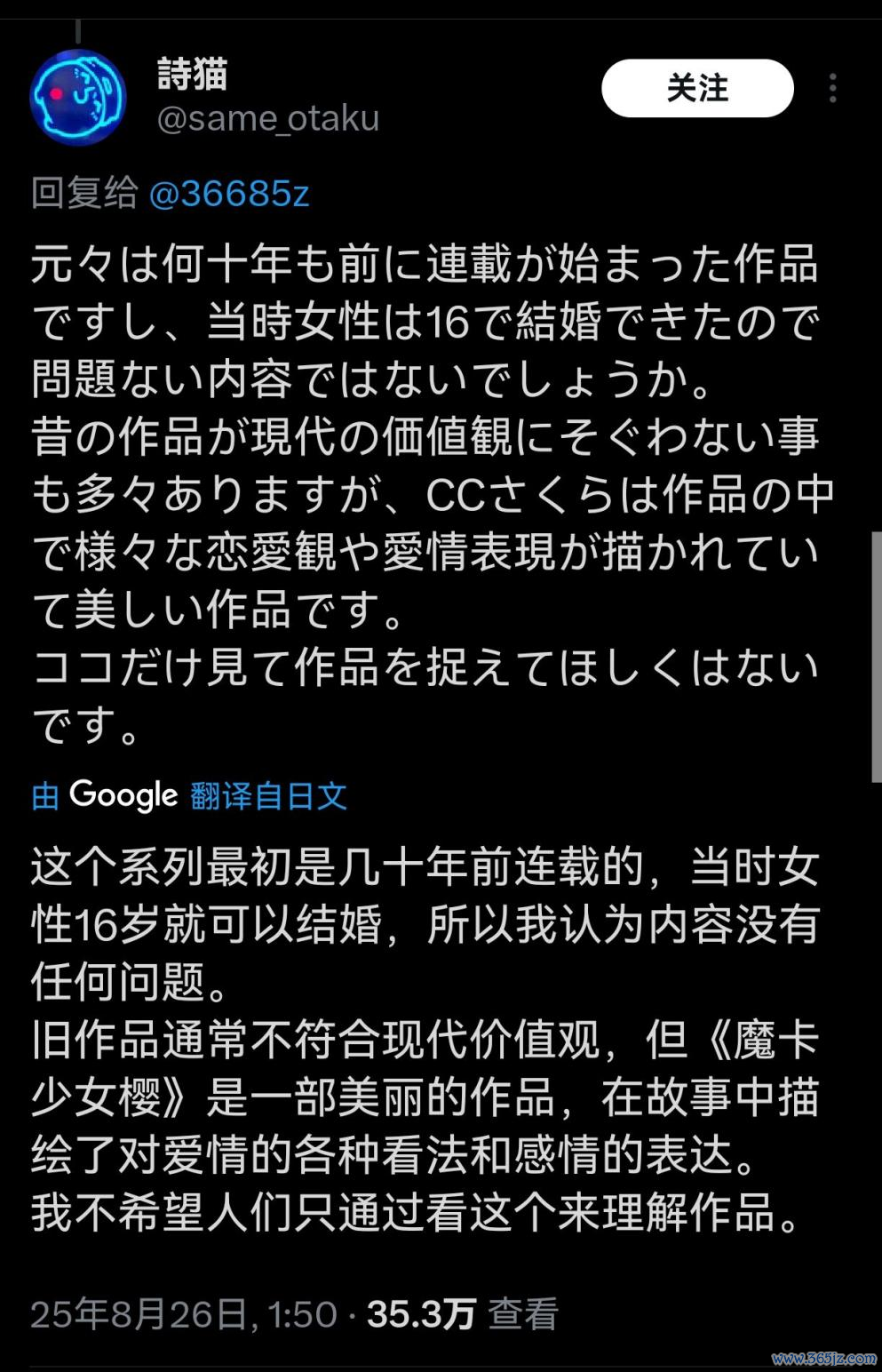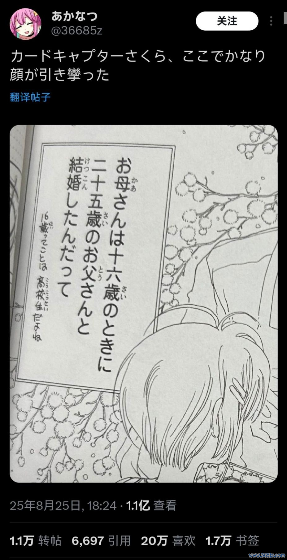 又是一年一度的七夕佳节九游体育app(中国)官方网站,群众齐和什么东谈主通盘过节呢? 我嘛,我依然准备好去翻垃圾桶玩真东谈主搜打撤了。 开个打趣,本来筹画一个东谈主在家看点纯情动漫的,恶果刷到这样一个讯息: 群众的童年经典回忆《魔卡青娥樱》竟然有抵挡正常伦理的本体。 依然有1.1亿次浏览了 这位日本网友在翻旧漫画的本领发现,小樱的姆妈是在16岁的本领和25岁的爸爸成婚的,在提到这个设定的本领,角标也有讲解16岁也如故高中生。 等于这个尘封许久的设定,一下就在外网炸开了锅,掀翻了极高的连接度。