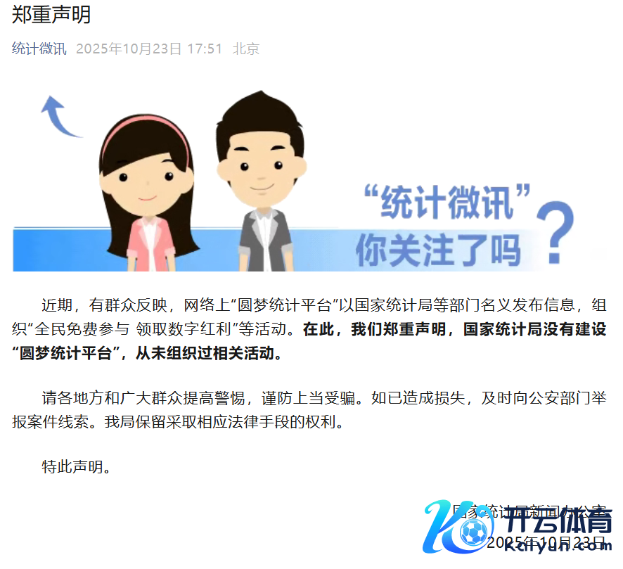 国度统计局细心声明:从未组织过“圆梦统计平台”联系活动现金九游体育app平台国度统计局细心声明:从未组织过“圆梦统计平台”联系活动