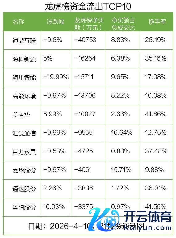 而龙虎榜中资金净流出最多的是通鼎互联(002491.SZ),被净卖出为4.08亿元,占总成交金额的8.83%。通鼎互联收盘下落9.6%,换手率为26.19%。