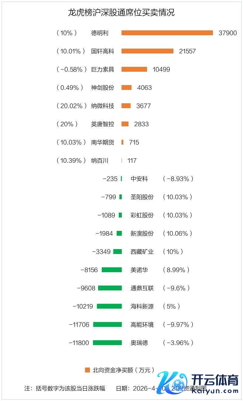 北向资金净买入金额最多的是德明利(001309.SZ),净买入3.79亿元,占总成交金额的3.72%。净卖出金额最多的是奥瑞德(600666.SH),为1.18亿元,占总成交金额的3.15%,当日收盘下落3.96%,换手率为23.95%。