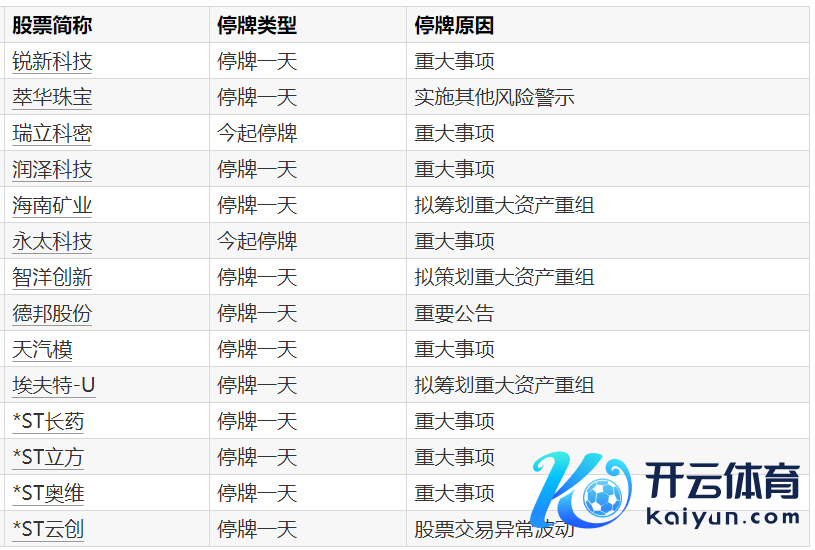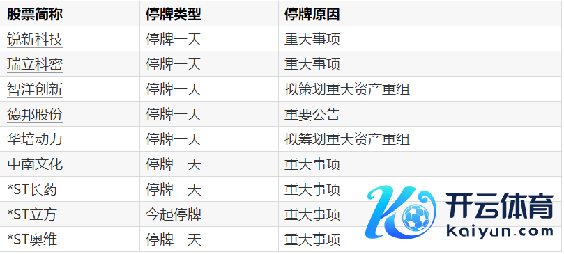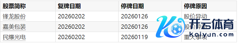 A股复牌领导:3股本日复牌现金九游体育app平台A股复牌领导:3股本日复牌