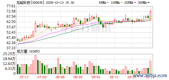 龙磁科技股价创出历史新高,截止11:16,该股高涨6.09%,股价报70.02元,成交量993.91万股,成交金额6.71亿元,换手率12.08%,该股最新A股总市值达83.50亿元,该股A股流畅市值57.62亿元。